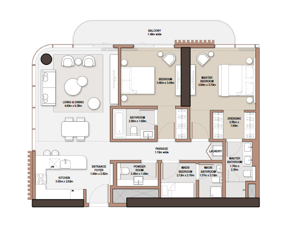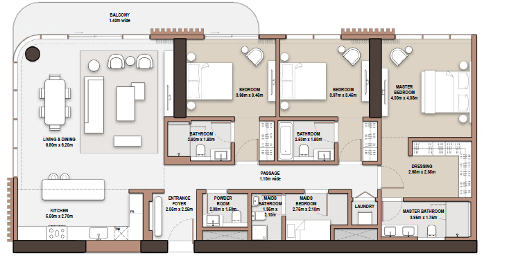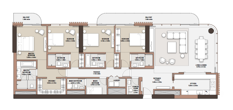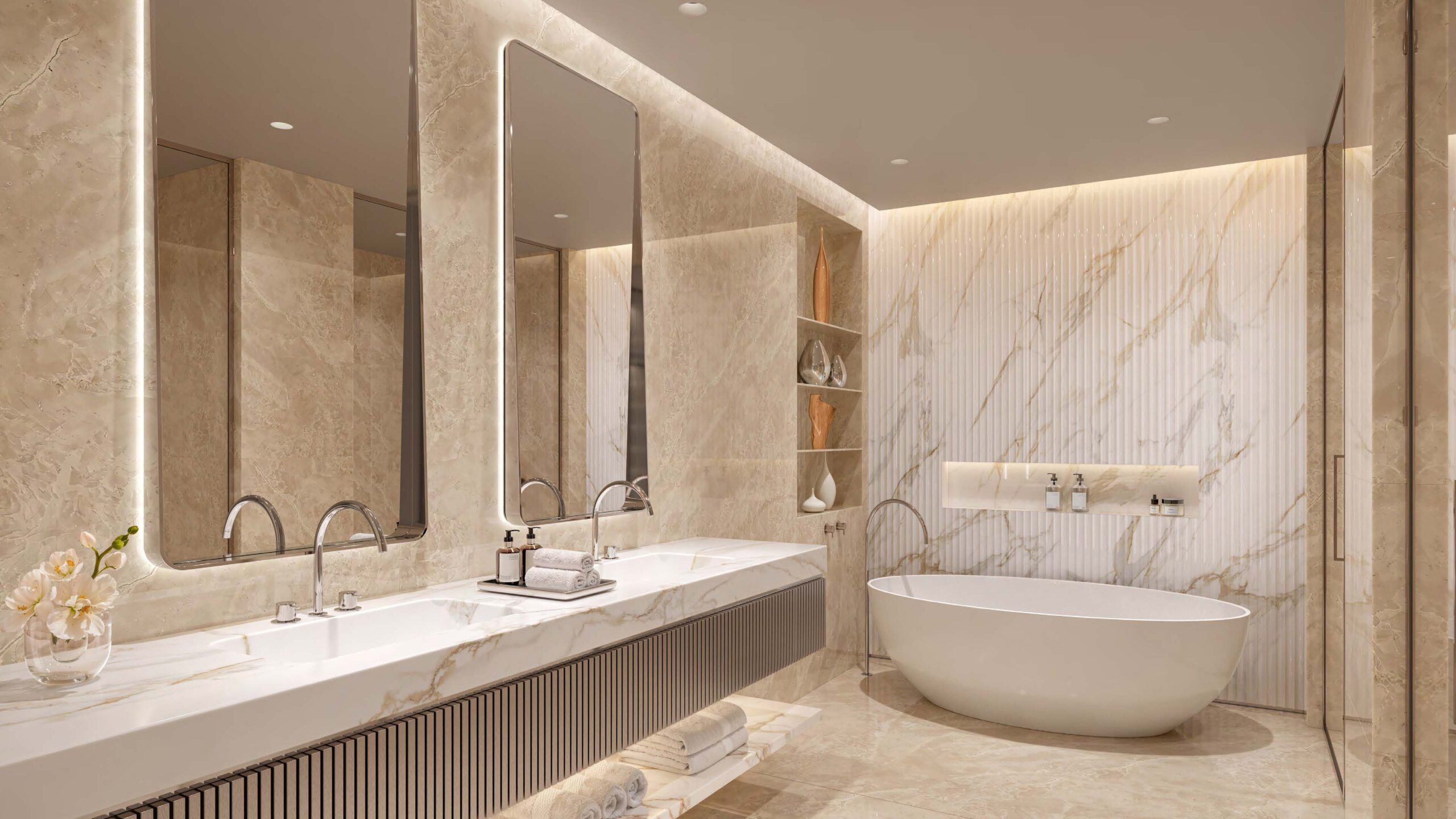 panoramic views of the Dubai skyline, lavish bedrooms, and spa-style bathrooms,