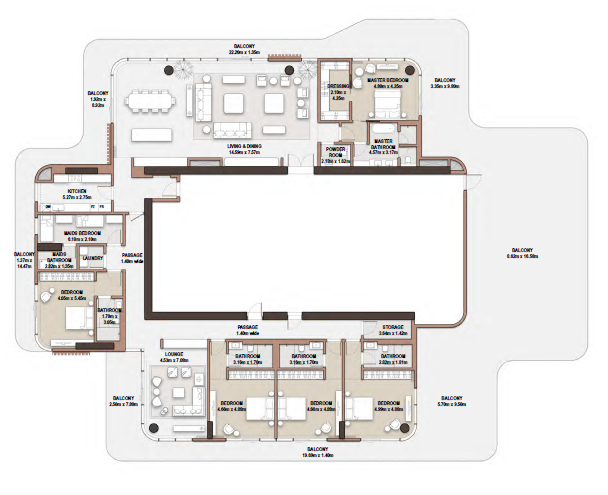The five-bedroom penthouses rise above it all, featuring soaring double-height