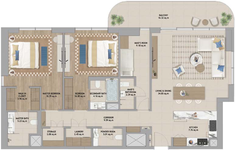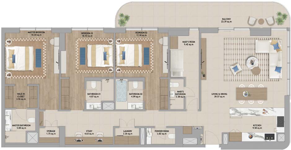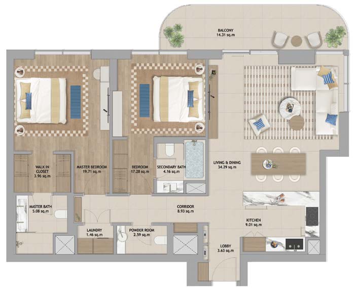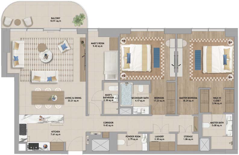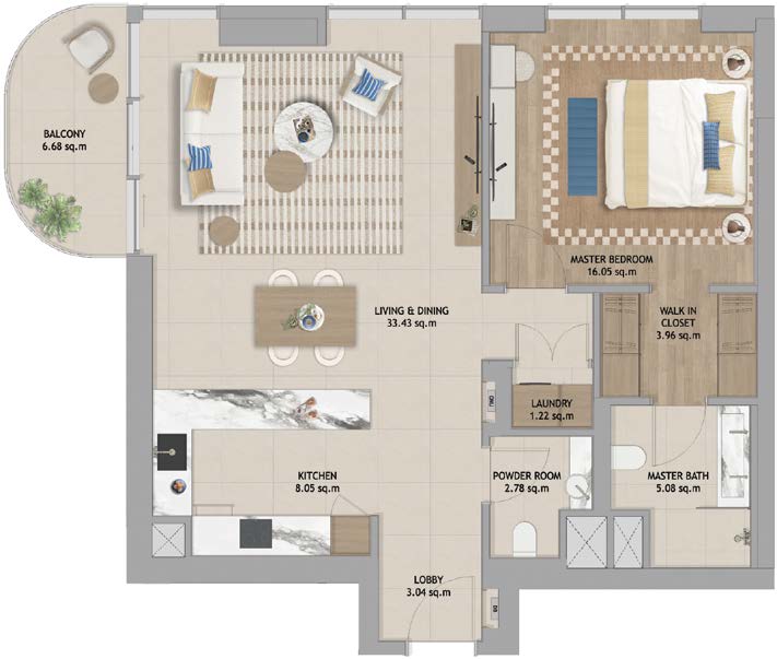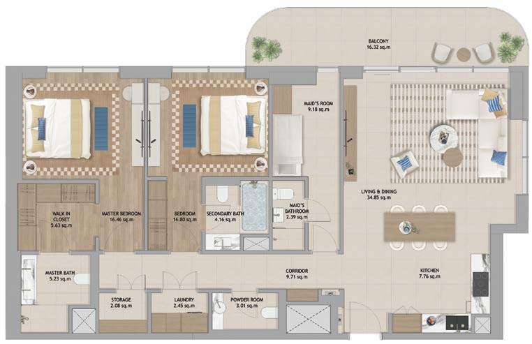 Live in the heart of The Beach House Fahid Island, where natural beauty and a vibrant lifestyle come together. Enjoy partial sea views and sights of the Abu Dhabi skyline, with direct access to the beach, green spaces, Coral Drive’s shops and cafes, and wellness walkways. This prime location offers everything you need for a healthy and balanced lifestyle—right at your doorstep.